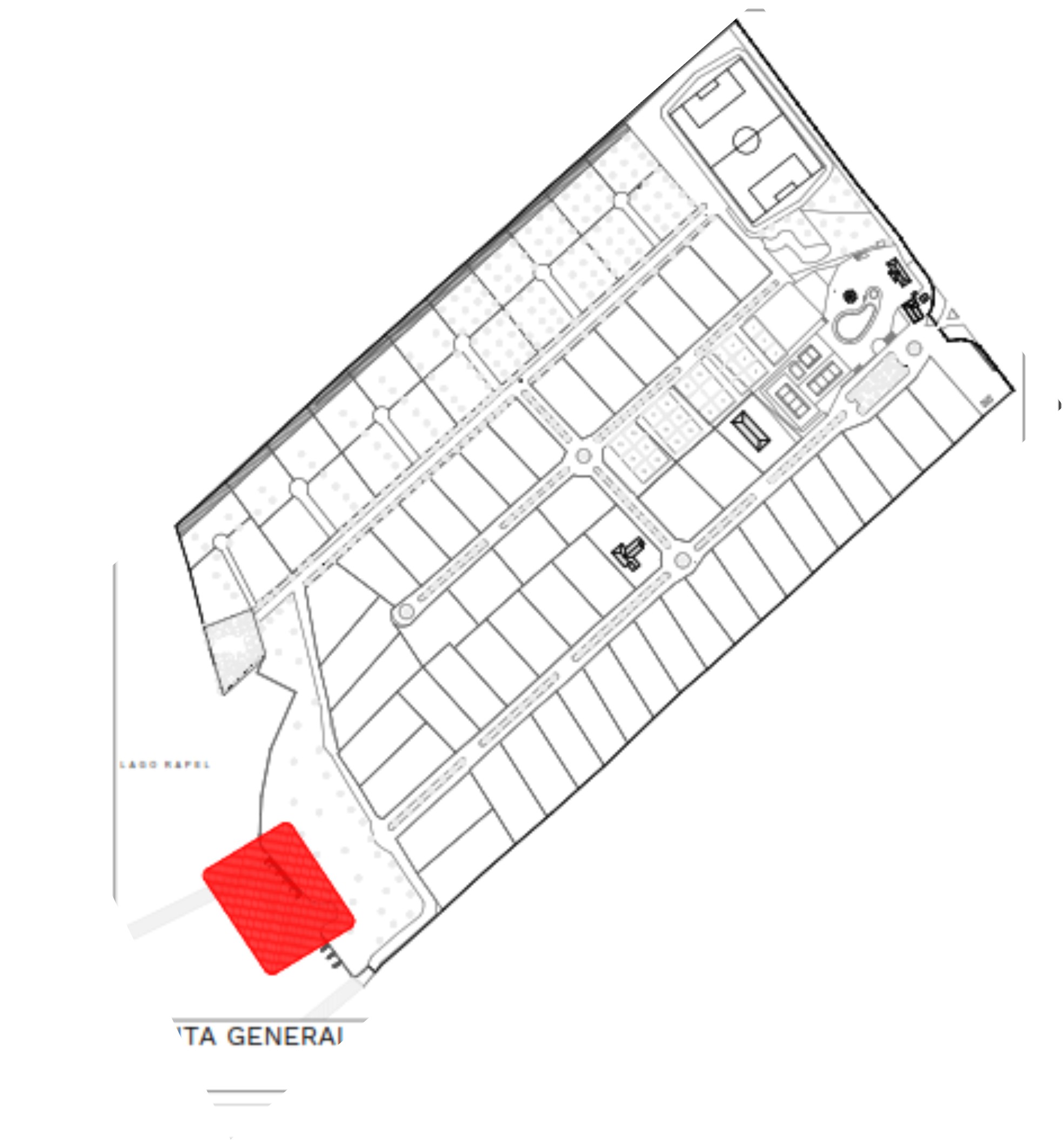 16.5 hectáreas de campo, bosques y lago. Cancha de futbol, canchas de tenis, frontón, voleibol playa, piscinas comunitarias. 263 metros lineales de orilla de lago, muelles, bajada de lanchas. 79 lotes con roles propios.